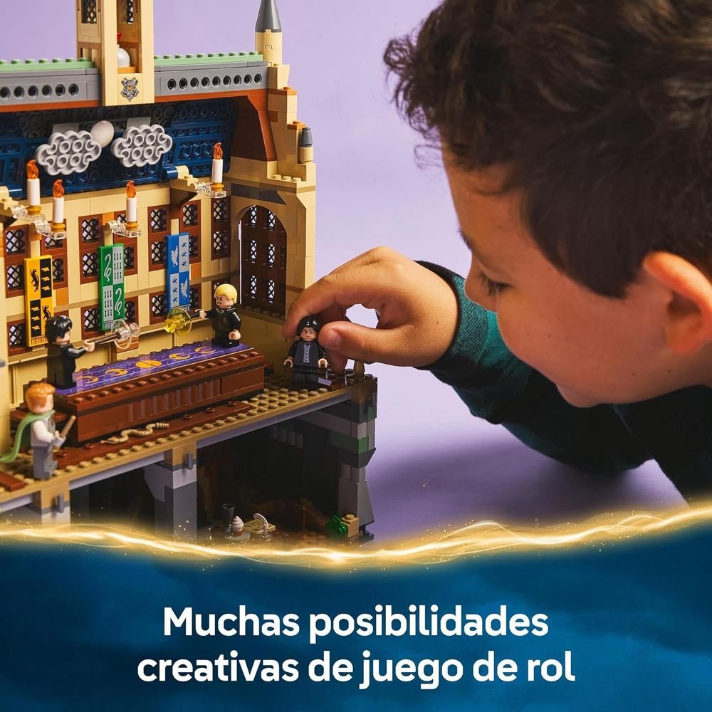El set cuenta con 4 populares personajes en formato de minifigura LEGO: Harry Potter y Draco Malfoy (con varitas y elementos que representan hechizos), y Gilderoy Lockhart y Severus Snape . Este pequeño set, una gran idea de regalo del universo Harry Potter para peques, es fantástico para iniciar a niños, niñas y aspirantes a magos o brujas en el Mundo Mágico de LEGO. Este juego de aventuras pertenece a una colección de juguetes de construcción LEGO Harry Potter modulares (a la venta por separado) que se conectan para crear la escena del Castillo de Hogwarts construida con ladrillos LEGO más detallada hasta ahora.