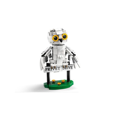 Anima a tu peque a vivir aventuras en su querido Mundo Mágico con el juguete Hedwig en el Número 4 de Privet Drive (76425), un modelo construible de fantasía basado en la entrañable mascota de Harry Potter. La figura de la lechuza nival Hedwig cuenta con cabeza, alas y cola articuladas, y puede posarse en una placa con el nombre de la calle Privet Drive.